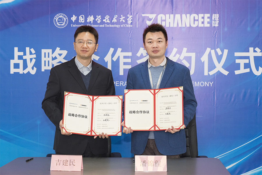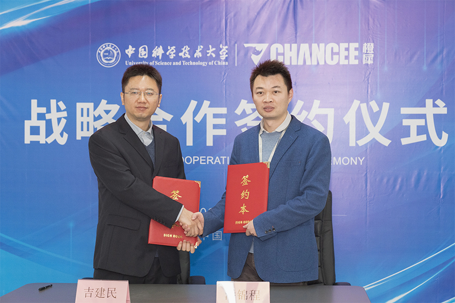 中國科學技術大學吉建民教授與橙犀工業(yè)科技市場營銷中心總監(jiān)潘錦程先生共同簽署合作協(xié)議。